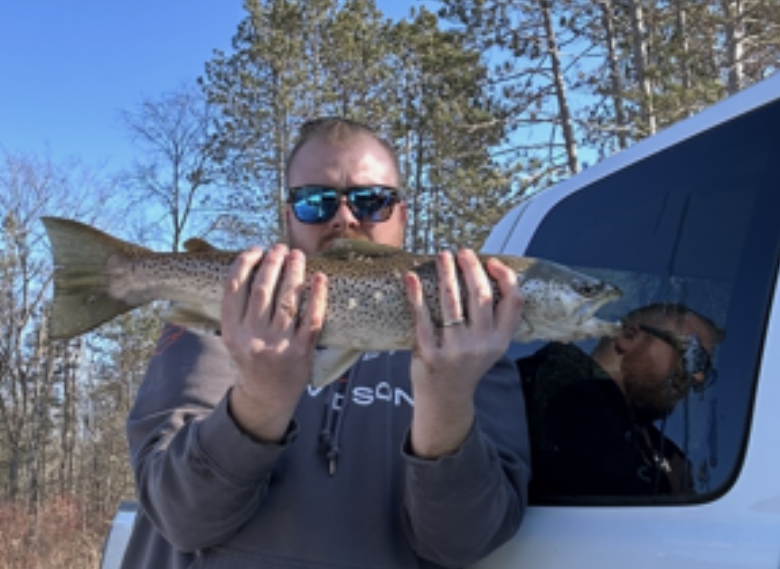 | Happy customer with their spin-fly rod. | Dwane from MI with a 20" 3lb lake run brown caught on his 7' 3wt s-glass spin-fly rod. |