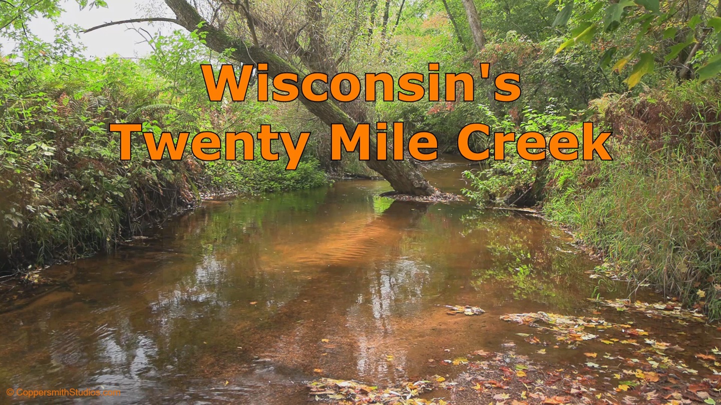 WATCH TWENTY MILE CREEK Twenty Mile Creek offers about 12 miles of mostly class 1 and some class 2 trout water as it flows thru Bayfield County in Northwest Wisconsin to join with Long Lake Branch, part of the White River watershed. DNR surveys have found an average of over 200 brown trout per mile and 1700 brook trout per mile. The brown trout usually max out at 14 inches and the brook trout can reach 13 inches. The lower portion runs thru the Bibon Swam SNA. I suspect the name 20 mile creek came from the distance to reach it from the towns of either Cable or Radspur. |