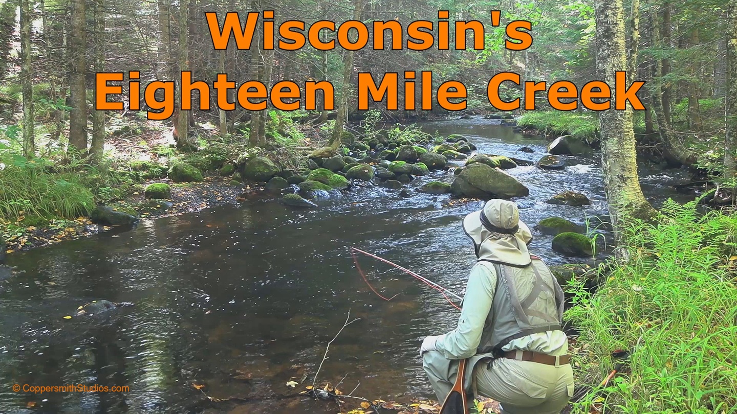 WATCH EIGHTEEN MILE CREEK Eighteen Mile Creek is part of the White River watershed. It offers 12 miles of class 1 trout water. There is a good amount of public access from the Chequamegon-Nicolet National Forest and state natural areas. According to DNR surveys, 18 Mile Creek has approximately 1800 trout per mile. The fish population is about 2/3rds brook trout and 1/3rd brown trout. The fish generally aren't known to get big, but there will be an occasional large brown in the lower section. |